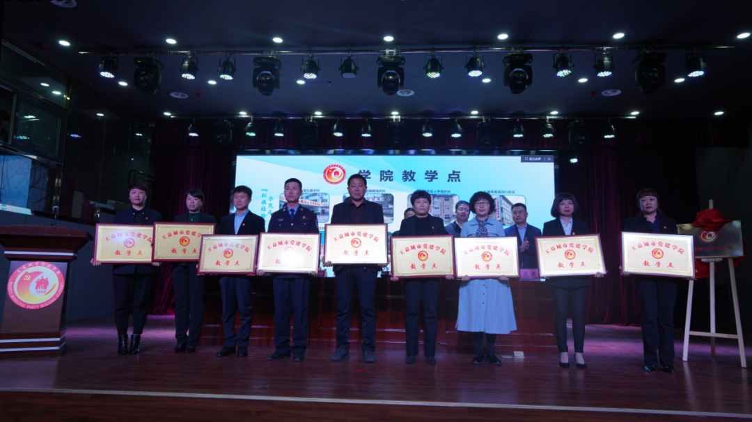 揭牌仪式为红旗街街道红旗社区、王家河街道柿树沟社区、铜川声威建材有限公司等10个教学点进行了现场授牌;为学院“首席特聘导师”“培训讲师”、首批“客座教授”“客座讲师”颁发了聘书。